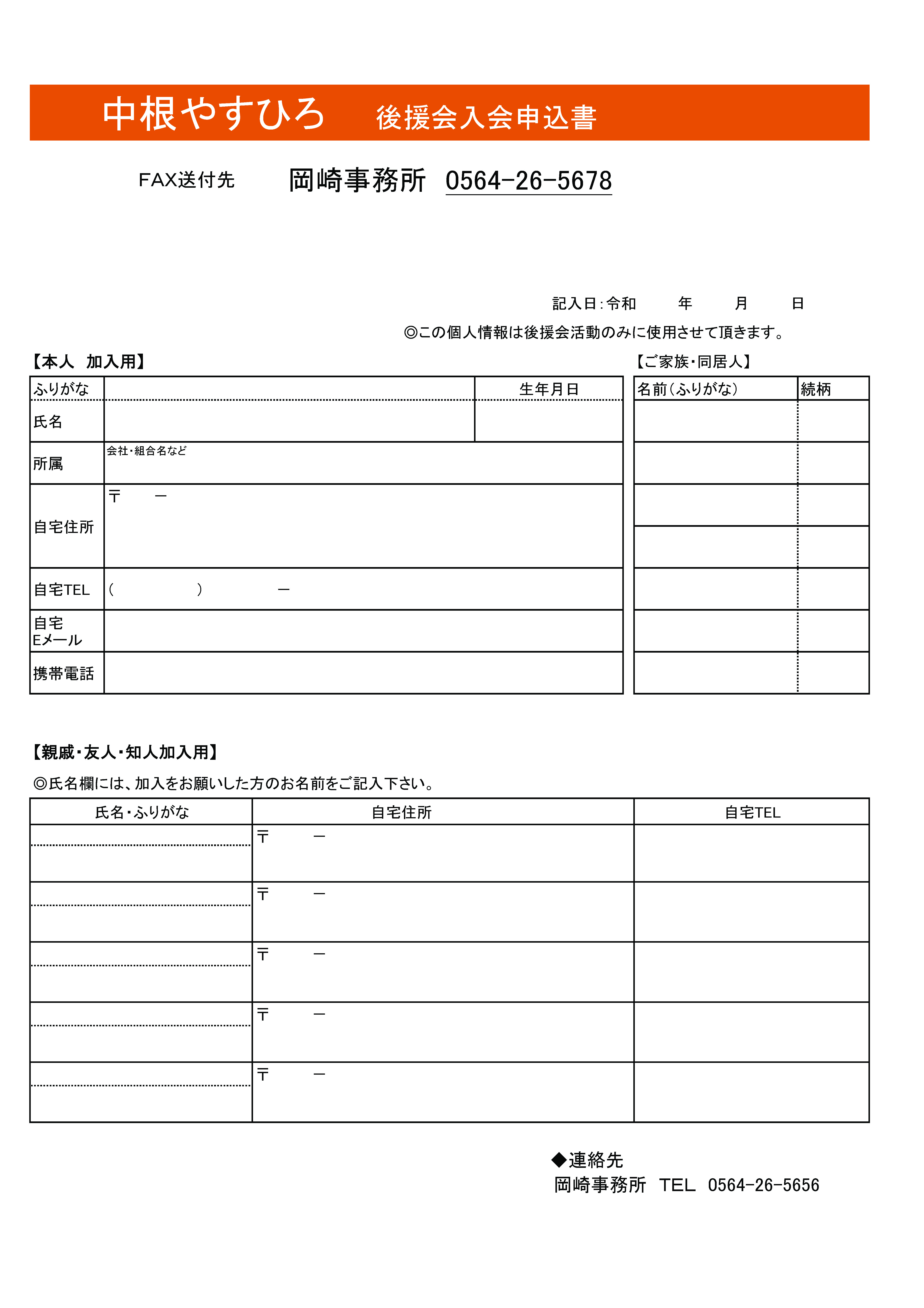 中根やすひろ後援会入会のご案内